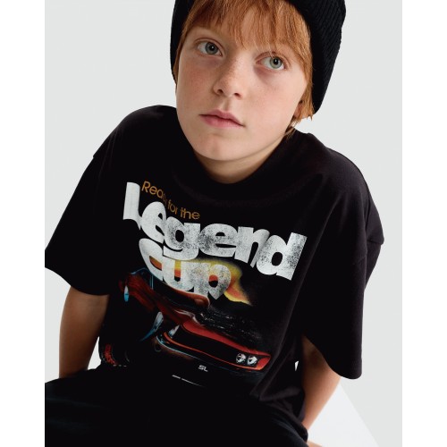 F&F Boys Pure Cotton Slogan Short Sleeved T-Shirt in Black