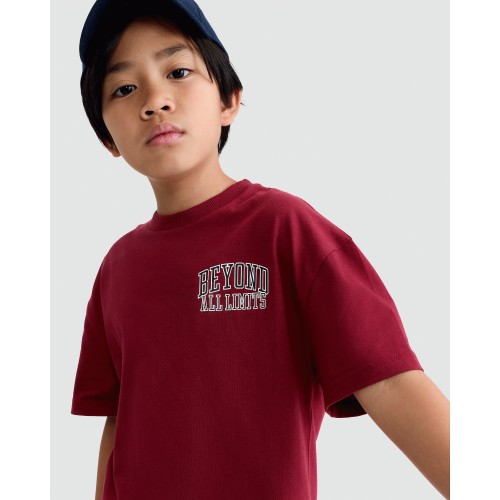 F&F Boys Pure Cotton Slogan Short Sleeved T-Shirt in Burgundy