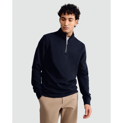 Cotton Rich Twill Textured High Neck Sweatshirt in Navy