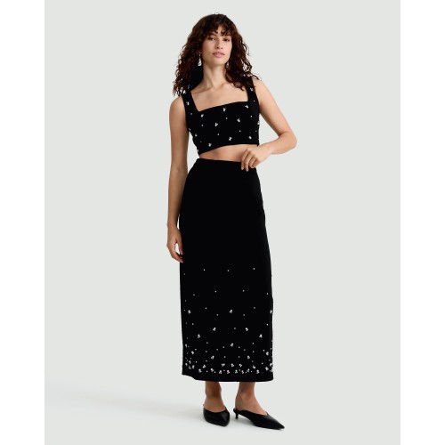 The F&F Edit Diamante Embellished Co-ord Midi Skirt in Black