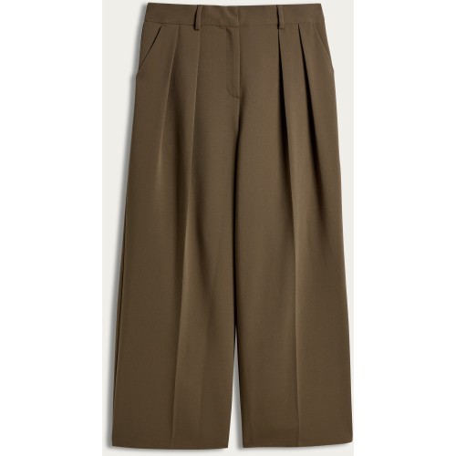 The F&F Edit Double Pleated Wide Leg Trousers with Linen in Burgundy