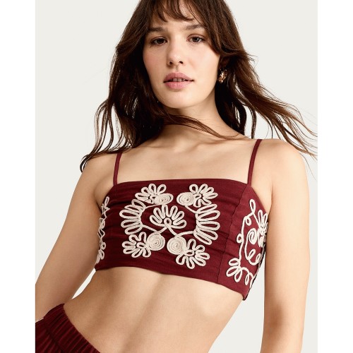 The F&F Edit Embroidered Strappy Co-ord Crop Top in Burgundy