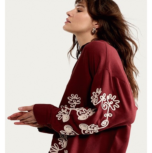 The F&F Edit Embroidered Button Up Co-ord Shirt in Burgundy