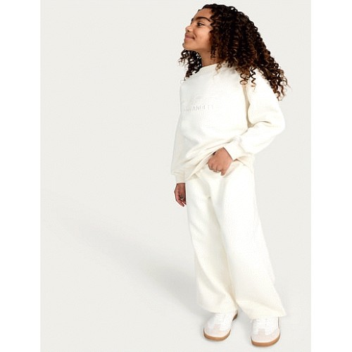 F&F Girls Cotton Rich Wide Leg Drawstring Co-ord Joggers in Cream