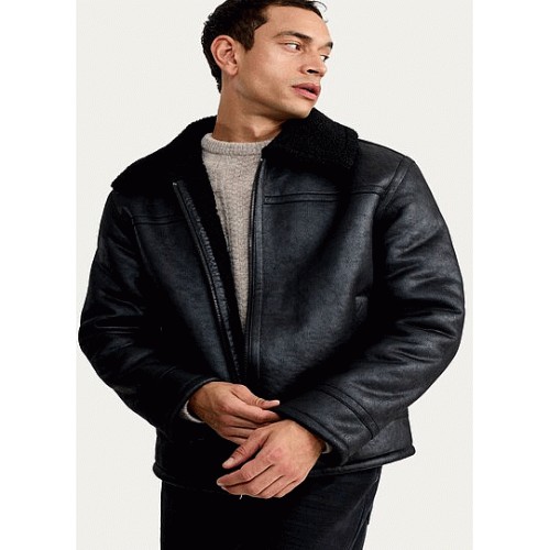 The F&F Edit Faux Shearling Lined Aviator Jacket in Black