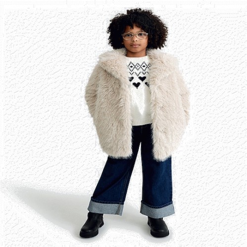 F&F Girls Faux Shearling Collar Jacket in Light Nude
