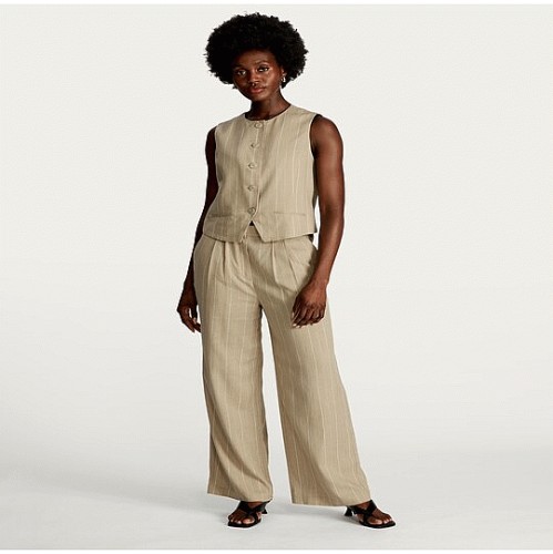 The F&F Edit Pinstripe Wide Leg Trousers in Khaki