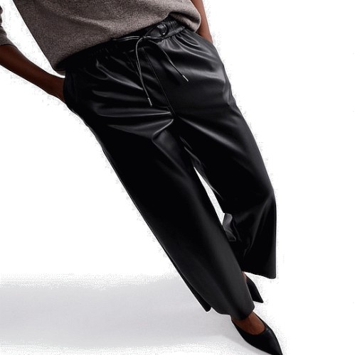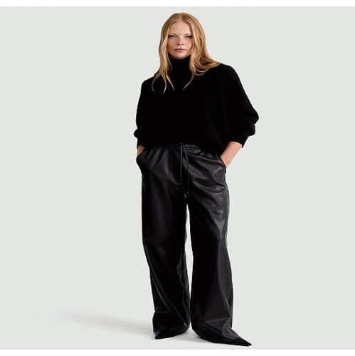 The F&F Edit Faux Leather Wide Leg Drawstring Trousers in Black