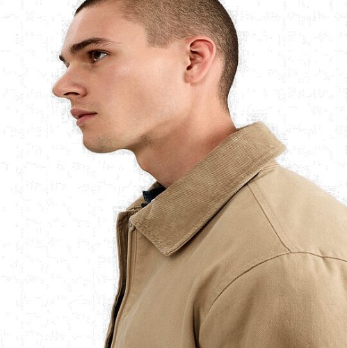 Pure Cotton Corduroy Collar Zip Front Jacket in Stone