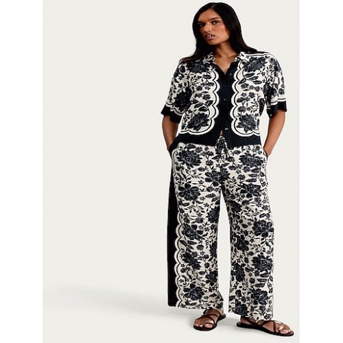 The F&F Edit Floral Print Wide Leg Co-ord Trousers in Multi Blue
