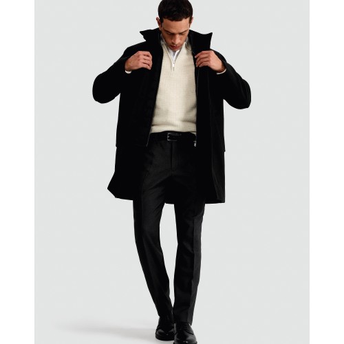 Formal Double Breasted Longline Overcoat with Wool in Neutral