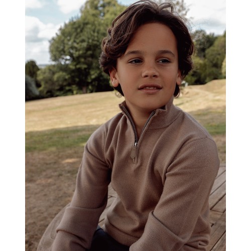 F&F Boys Cotton Rich Half Zip Sweatshirt in Med Nude