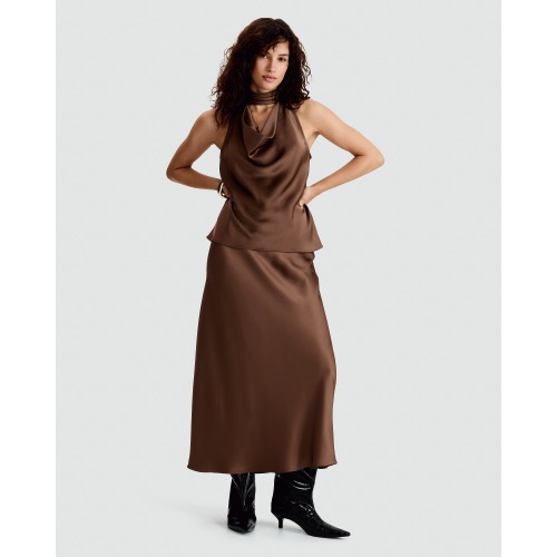 The F&F Edit Satin High Cowl Neck Sleeveless Blouse in Brown