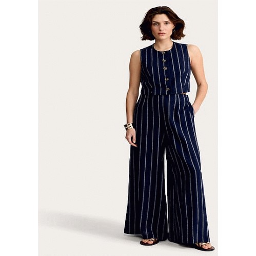 The F&F Edit Linen Rich Stripe Super Wide Leg Trousers in Navy