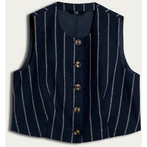The F&F Edit Linen Rich Stripe Co-ord Waistcoat in Navy