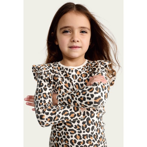 F&F Girls Cotton Rich Leopard Print Long Sleeved Dress in Multi Brown