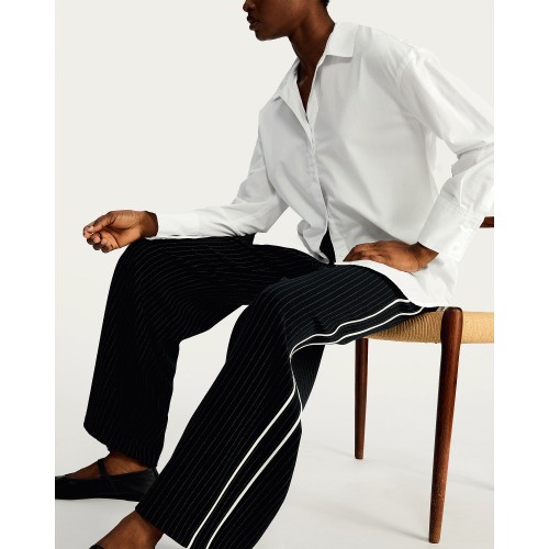 The F&F Edit Pinstripe Wide Leg Trousers in Navy