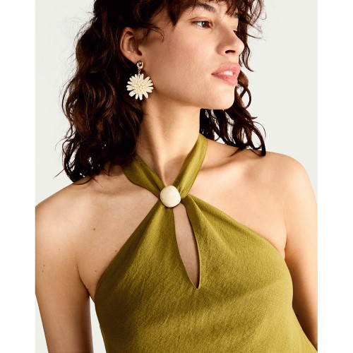 The F&F Edit Beaded Halter Neck Mini Dress in Olive