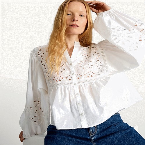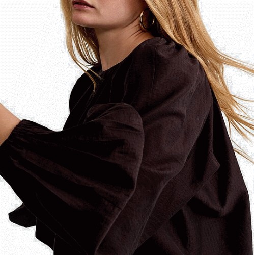 The F&F Edit Lyocell Rich Gathered Long Sleeved Blouse in Brown