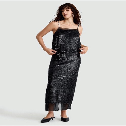 The F&F Edit Organza Trim Sequin Embellished Co-ord Midi Skirt in Black