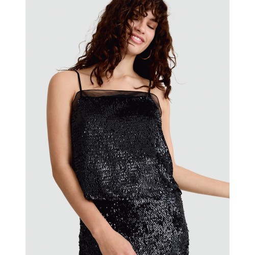 The F&F Edit Organza Trim Sequin Embellished Co-ord Camisole in Black