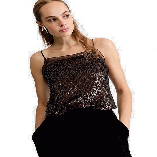 The F&F Edit Organza Trim Sequin Embellished Co-ord Camisole in Brown