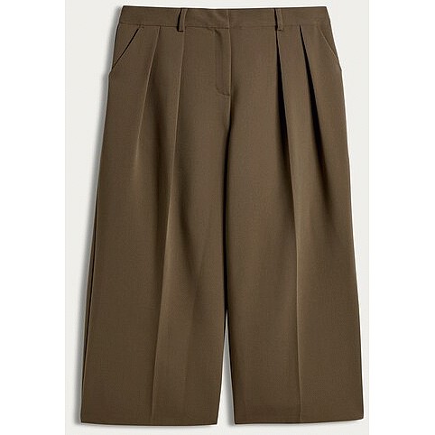 The F&F Edit Wide Leg Pleated Trousers in Khaki