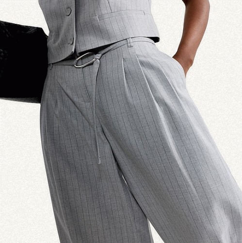 The F&F Edit Pinstripe Wide Leg Trousers in Khaki