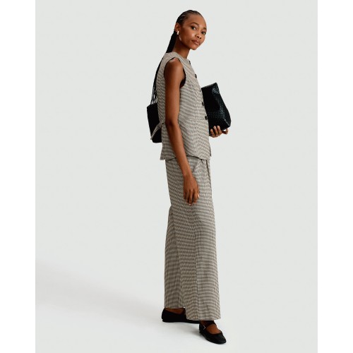 The F&F Edit Double Pleat Check Wide Leg Trousers in Brown