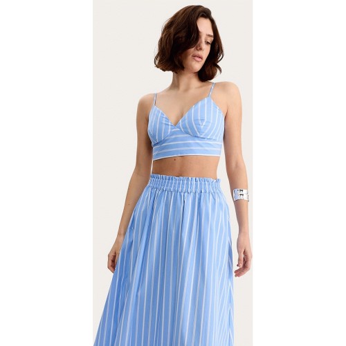 The F&F Edit Pure Cotton Poplin Stripe Co-ord Bralette in Multi Blue