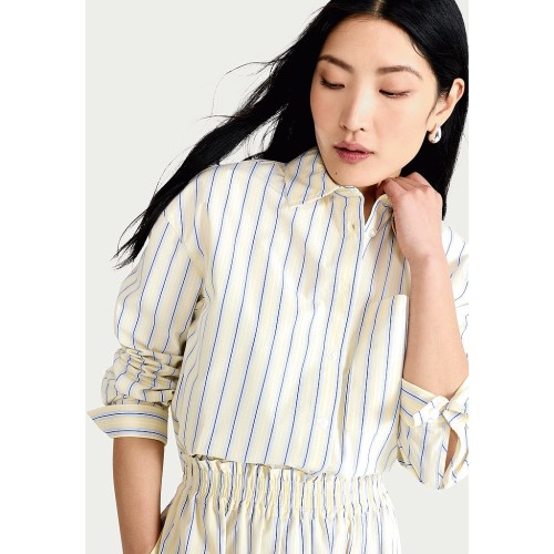 The F&F Edit Pure Cotton Poplin Stripe Cropped Co-ord Shirt in Amber
