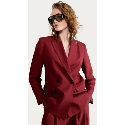 The F&F Edit Double Breasted Oversized Fit Blazer with Linen in Burgundy