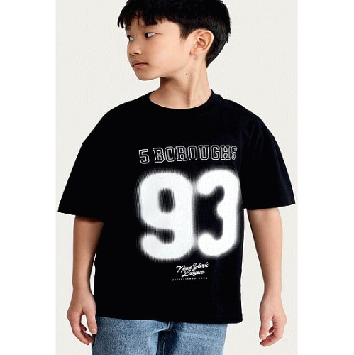 F&F Boys Pure Cotton Printed Oversized Fit T-Shirt in Black