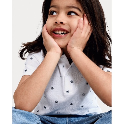 F&F Boys Pure Cotton Seaside Print Polo Shirt in White