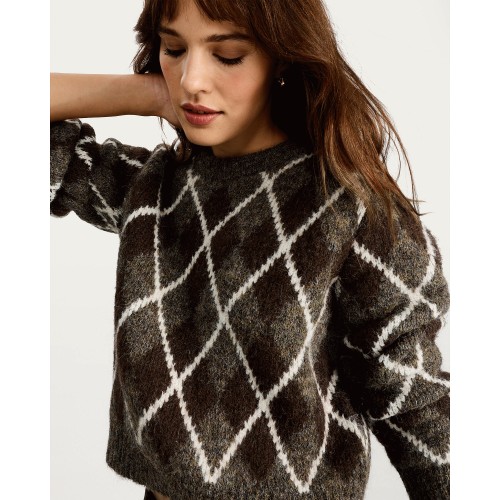 The F&F Edit Knitted Argyle Pattern Jumper with Wool in Brown