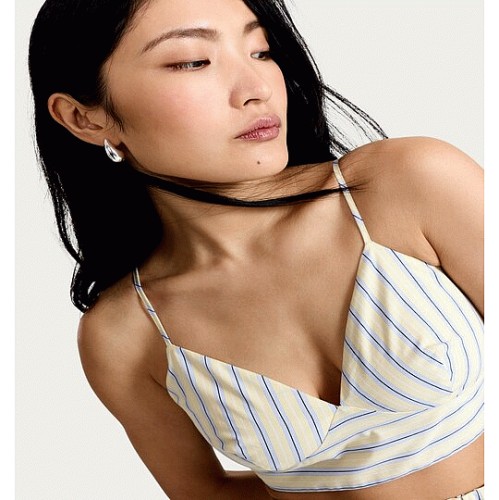 The F&F Edit Pure Cotton Poplin Stripe Co-ord Bralette in Multi Yellow