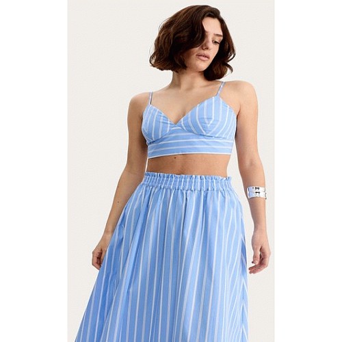 The F&F Edit Pure Cotton Poplin Stripe Co-ord Bralette in Multi Blue
