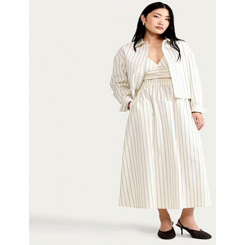 The F&F Edit Pure Cotton Poplin Stripe Co-ord Midi Skirt in Yellow