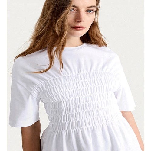 The F&F Edit Pure Cotton Shirred Waist Short Sleeved Top in White