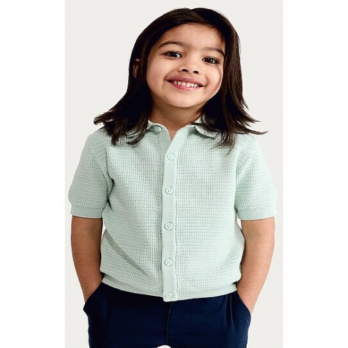 F&F Boys Pure Cotton Textured Knit Polo Shirt in Green