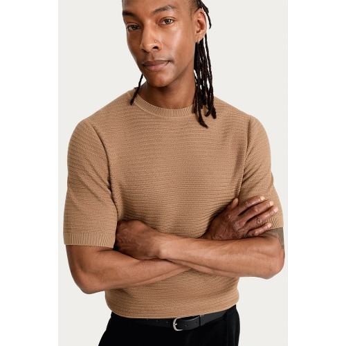 The F&F Edit Pure Cotton Textured Knit T-Shirt in Khaki