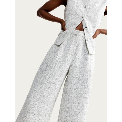 Textured Wide Leg Trousers in Cream