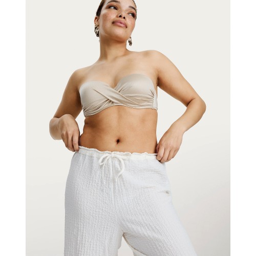 Tie Waist Cropped Wide Leg Trousers with Linen in Neutral