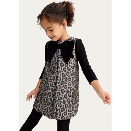 F&F Girls Leopard Print Bow Accent Sleeveless Dress in Multi Brown