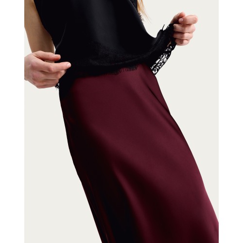 Satin Midi Slip Skirt in Burgundy