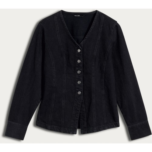 Pure Cotton Seam Detail Button Front Denim Shirt in Black
