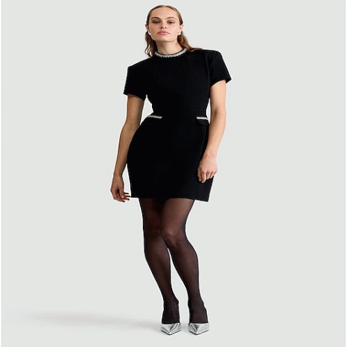 The F&F Edit Ponte Embellished Collar Short Sleeved Dress in Black