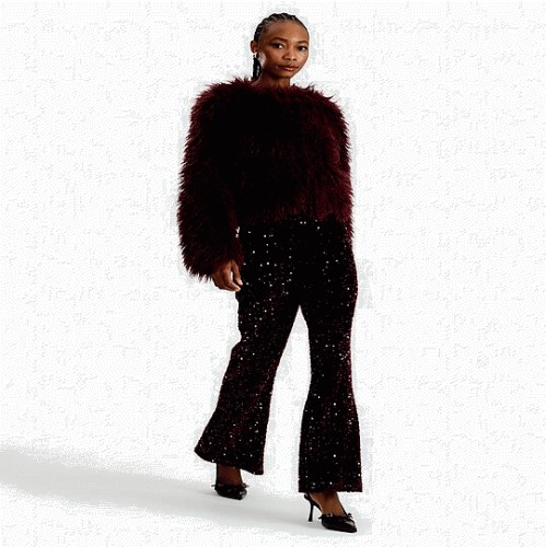The F&F Edit Sequin Flared Trousers in Burgundy