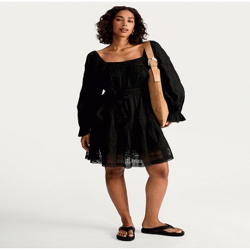 The F&F Edit Pure Cotton Broderie Anglaise Mini Dress in Black