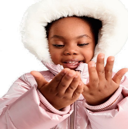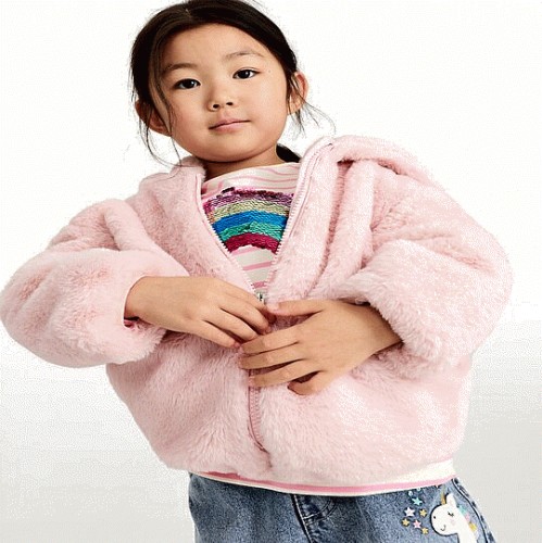 F&F Girls Faux Fur Hooded Jacket in Pink